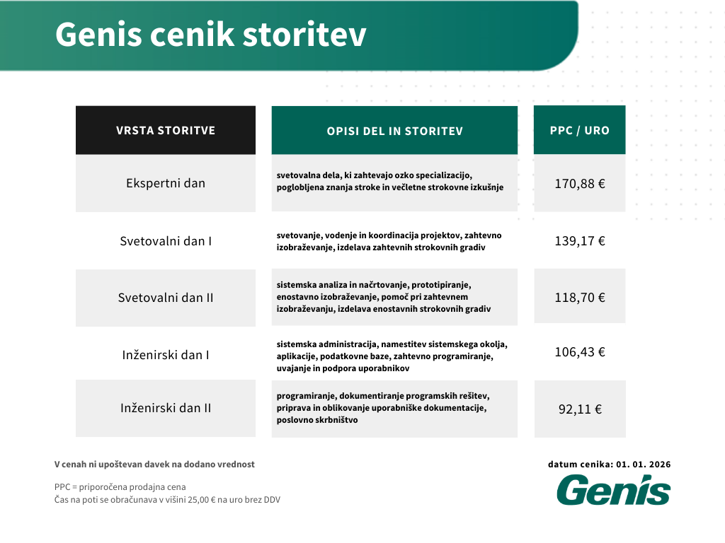 Podjetje Genis se je kot partner projekta »Inženirke in inženirji bomo!« v promocijo STEM-poklicev vključilo februarja 2022, svojo zavezanost izobraževanju mladih pa izkazuje že dlje časa. Že od leta 2013 sodeluje v projektu Dan odprtih vrat slovenskega gospodarstva, kjer osnovnošolcem in dijakom približuje svet gospodarstva ter jim odpira vpogled v sodobne tehnološke poklice. Poleg tega dijakom in študentom s področja informatike omogoča različne oblike praktičnega vključevanja – od srednješolske in študijske prakse do sodelovanja pri razvojnih projektih in počitniškega dela.